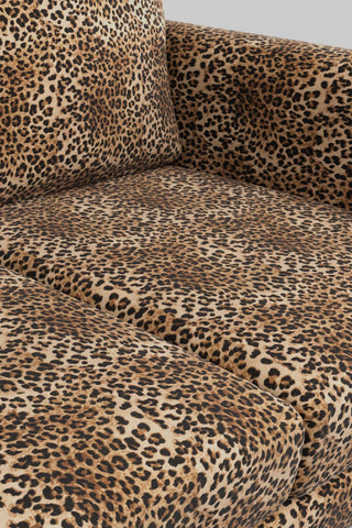 A close up image of an arm of the The Edie Leopard Print 2 Seater Sofa.