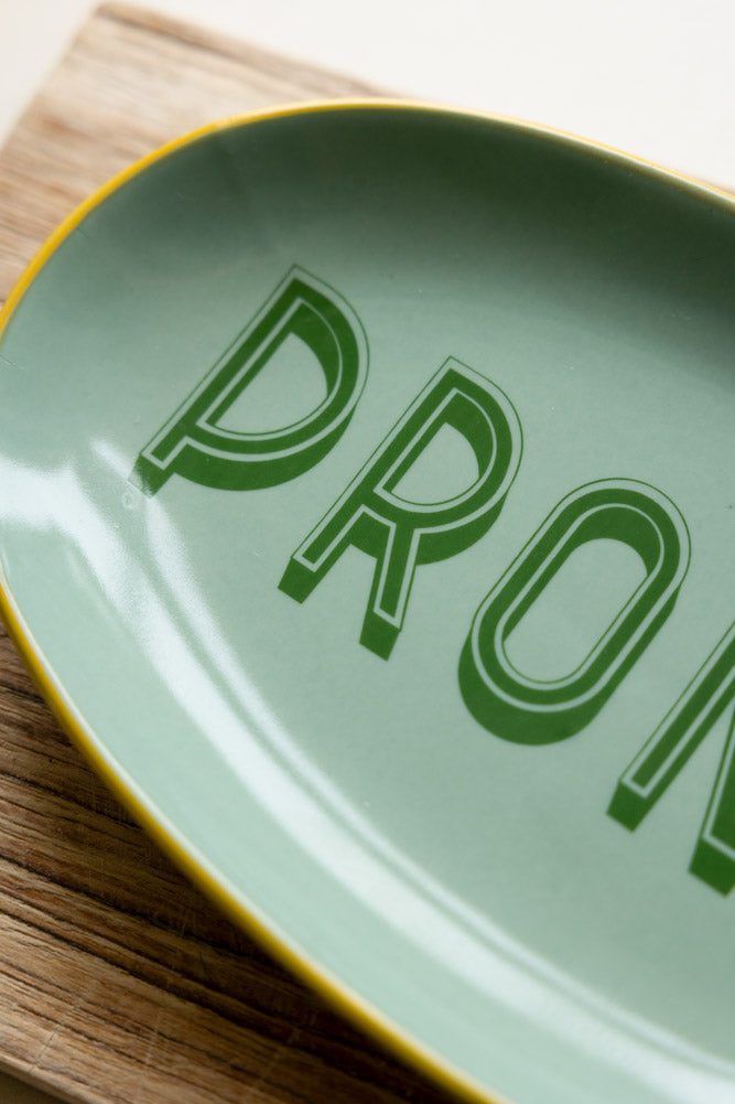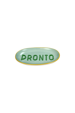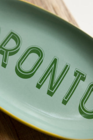 This plate is just the zesty splash of fun your table needs! An oval-shaped piece crafted in refreshing mint green, with the word ‘Pronto’ encouraging you to eat up, this captures the Italian spirit of ‘ready and raring to go!’ perfectly. This fu...