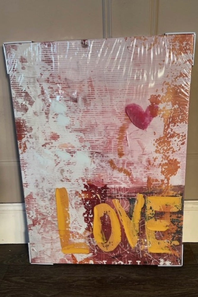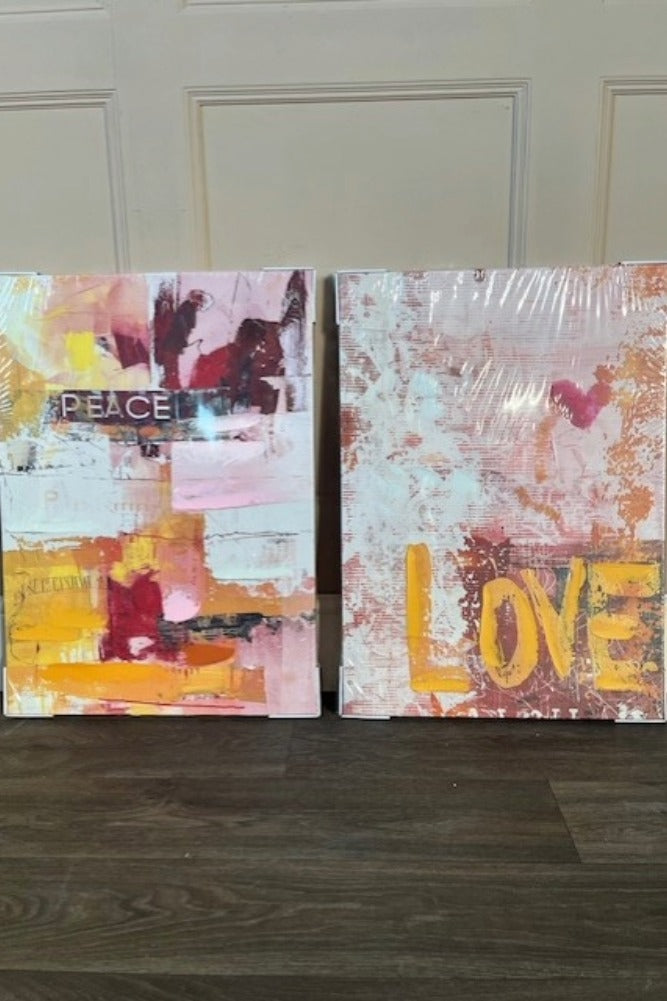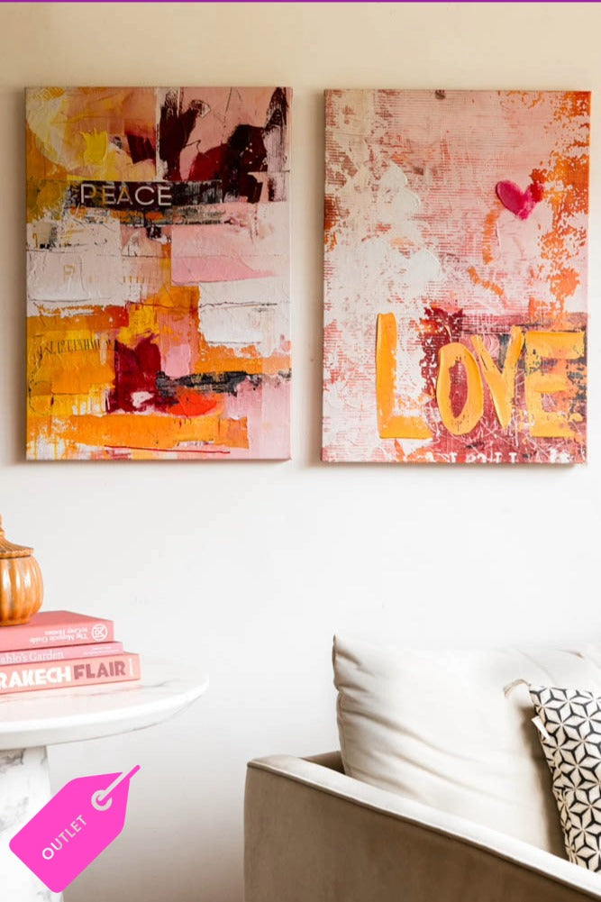 The Set of 2 Pink & Orange Abstract Peace/Love Wall Art feels like a warm embrace paired with a burst of joy. These prints have been removed from their original packaging and are classified as Slight Seconds. Featuring bold brushstrokes, vibra...