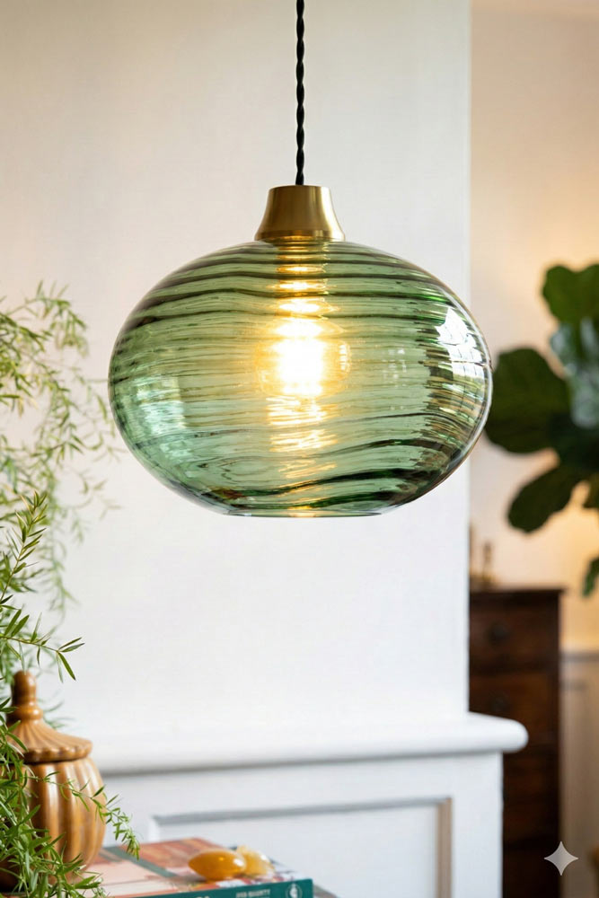 Meet the Swirled Glass Easyfit Ceiling Light Shade in Green – the glass ceiling light that quietly steals the show. With its beautifully rounded silhouette and soft ripple texture, this shade catches the light in the dreamiest way. The swirl effec...