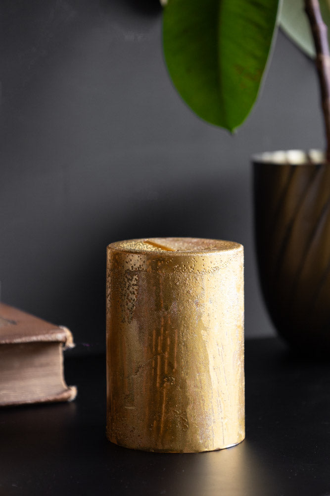 Lifestyle image of the Pretty Gold Milagro Heart Candle Holder