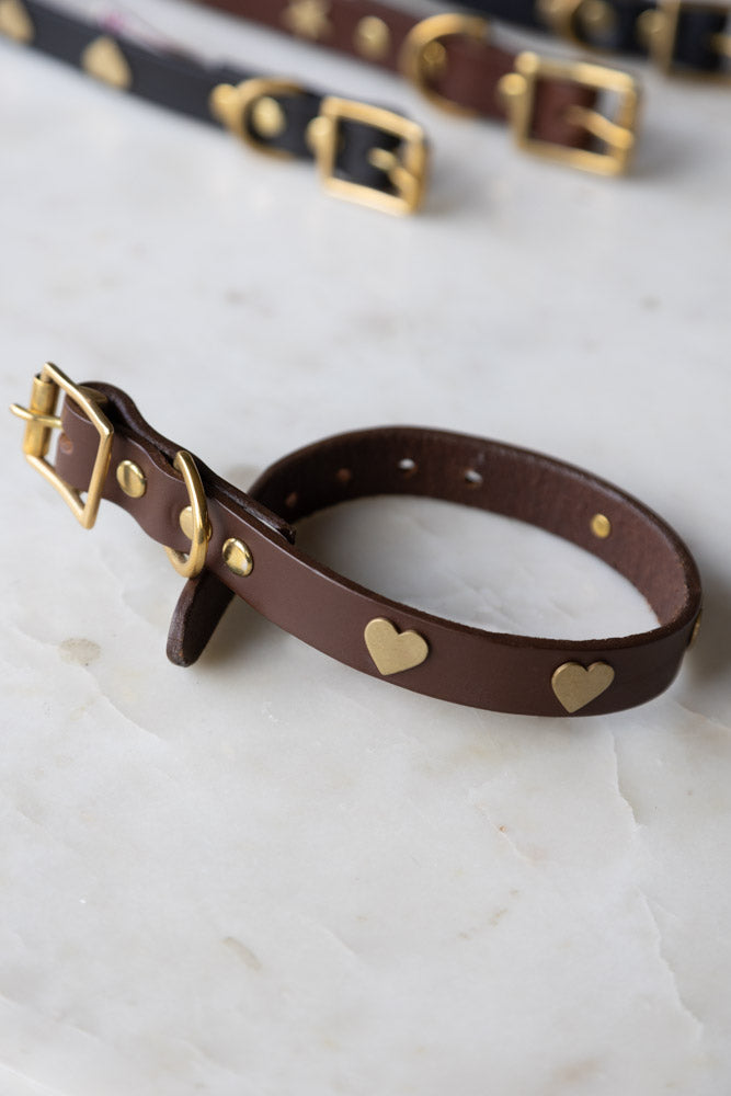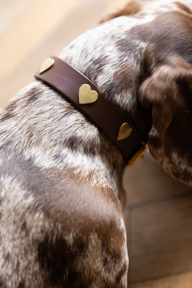 Why We Think You Will Love The Brown Leather Dog Collar With Brass Studded Hearts