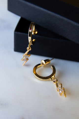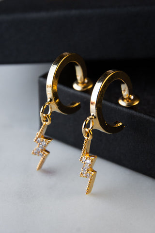 The Waterproof Gold Wink Face Charm Earrings displayed on a white surface.