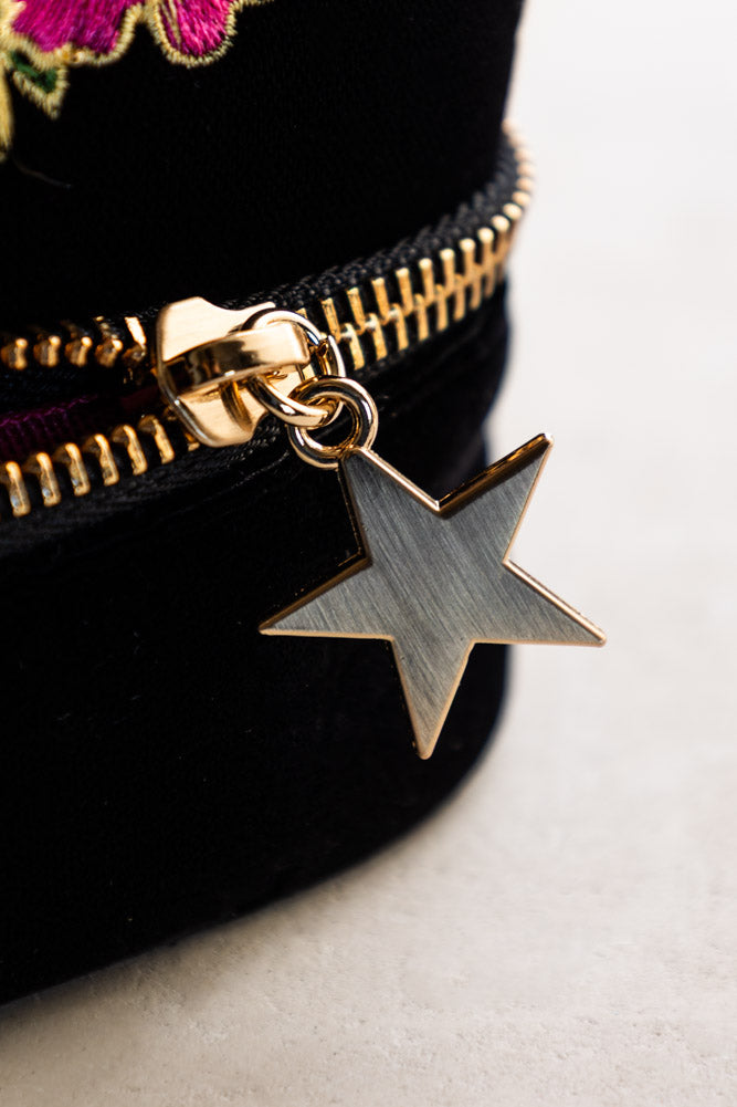 Talk about fierce and fabulous! This toiletry bag is the ultimate travel companion. Crafted from luxe black velvet and embroidered with a strutting golden tiger, bold pink florals and twinkling stars, this beauty bag is basically a work of art tha...