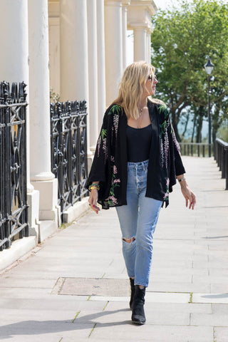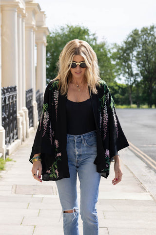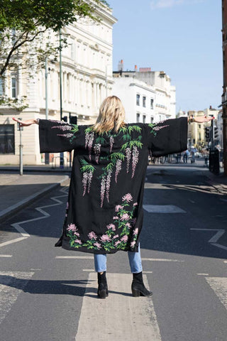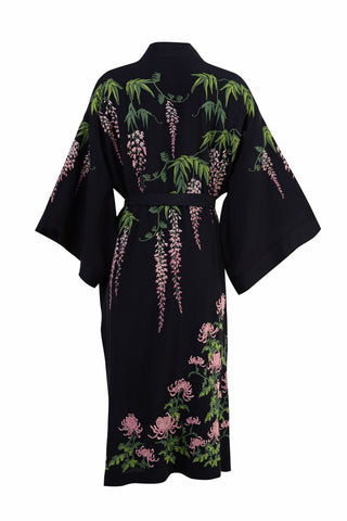Meet our Wisteria & Chrysanthemums Black Kimono – an absolute dream of a dressing gown that’ll have you feeling like a goddess, whether you’re curled up on the sofa or strutting your women's loungewear down the street. Draped in the dreamiest ...