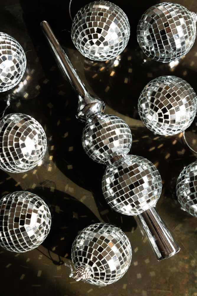 A great tip is to start with our multi-pack baubles, like our collection of disco ball ornaments. Filling your tree with these smaller baubles before adding larger, more dramatic pieces will give your tree a fuller, more luxurious look.