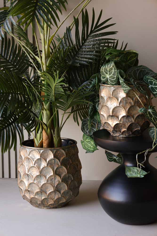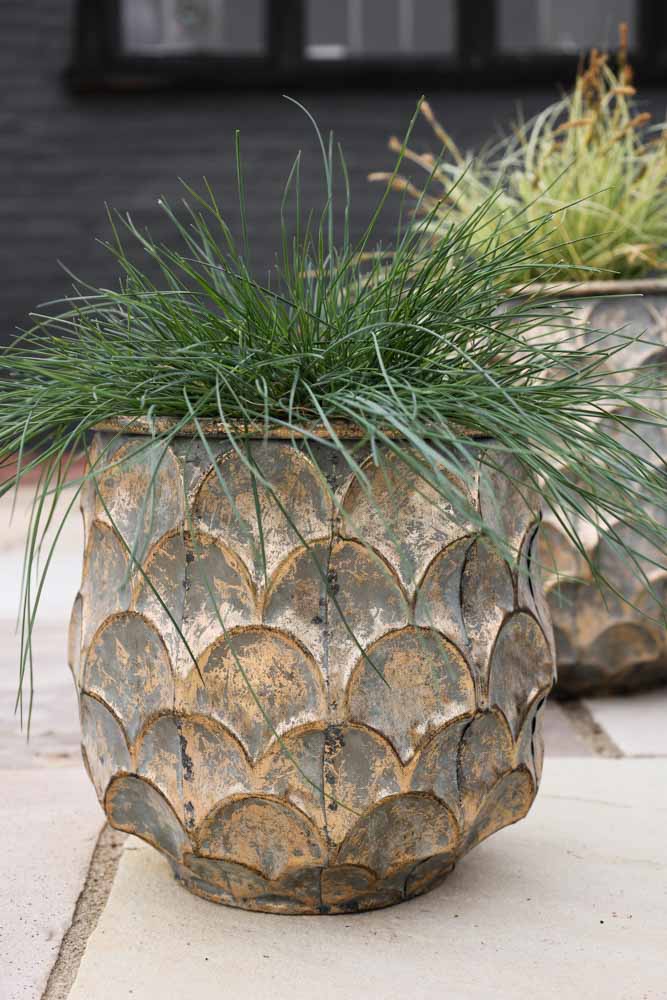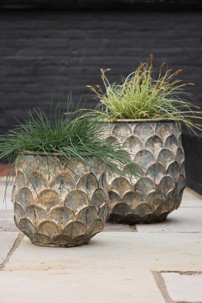 Giving your interior scheme an edgy burst of metallic magic, these metal indoor planters will make a striking juxtaposition against natural, vibrant plants. The various tones of green against the oxidised blue hues on this plant stand will make an eye-catching statement styled in your living room, dining room or kitchen.