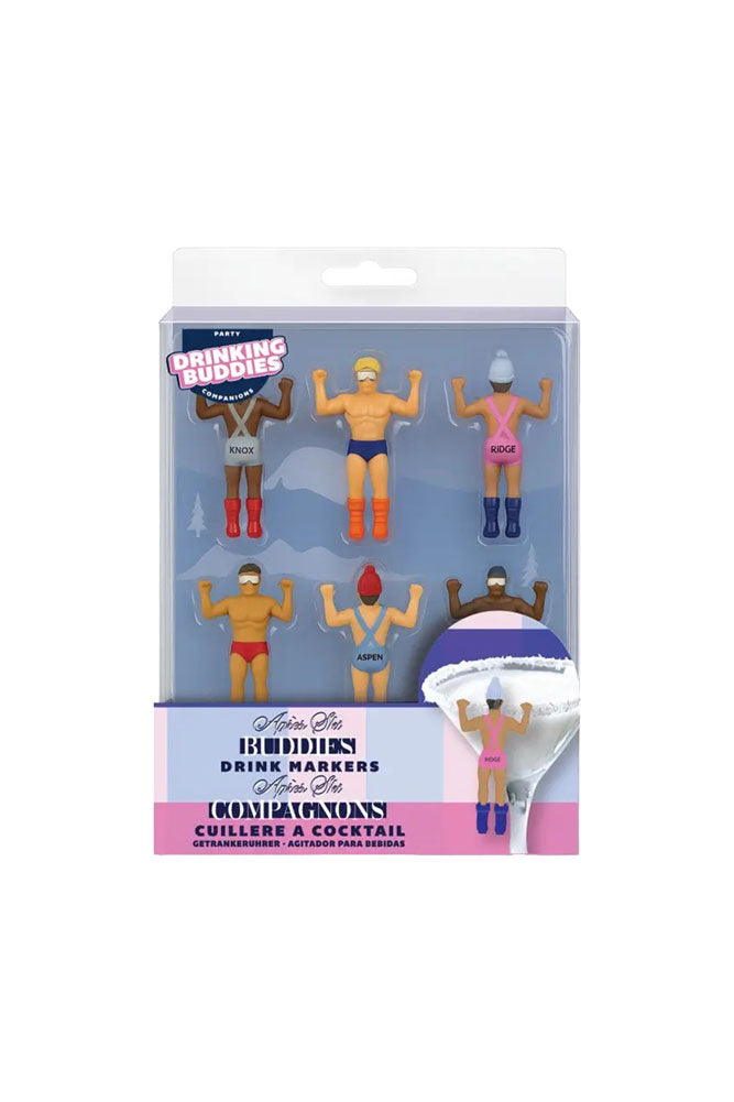 Meet your new drinking crew! This set of home bar accessories is the ultimate party sidekicks, ready to keep track of your glass while turning up the fun. Each little ski hunk comes decked out in goggles, boots, and not much else. Just hook one on...