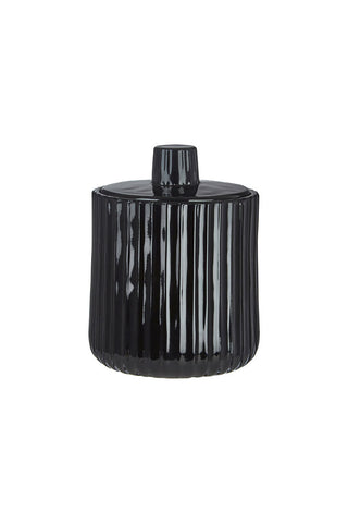 Introducing the Ribbed Black Glass Storage Canister, a perfect blend of sophistication and rustic charm. This compact black glass storage jar showcases elegant vertical ribbing, adding depth and dynamic to its design, perfect for your bathroom st...