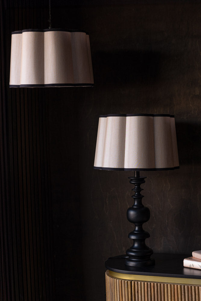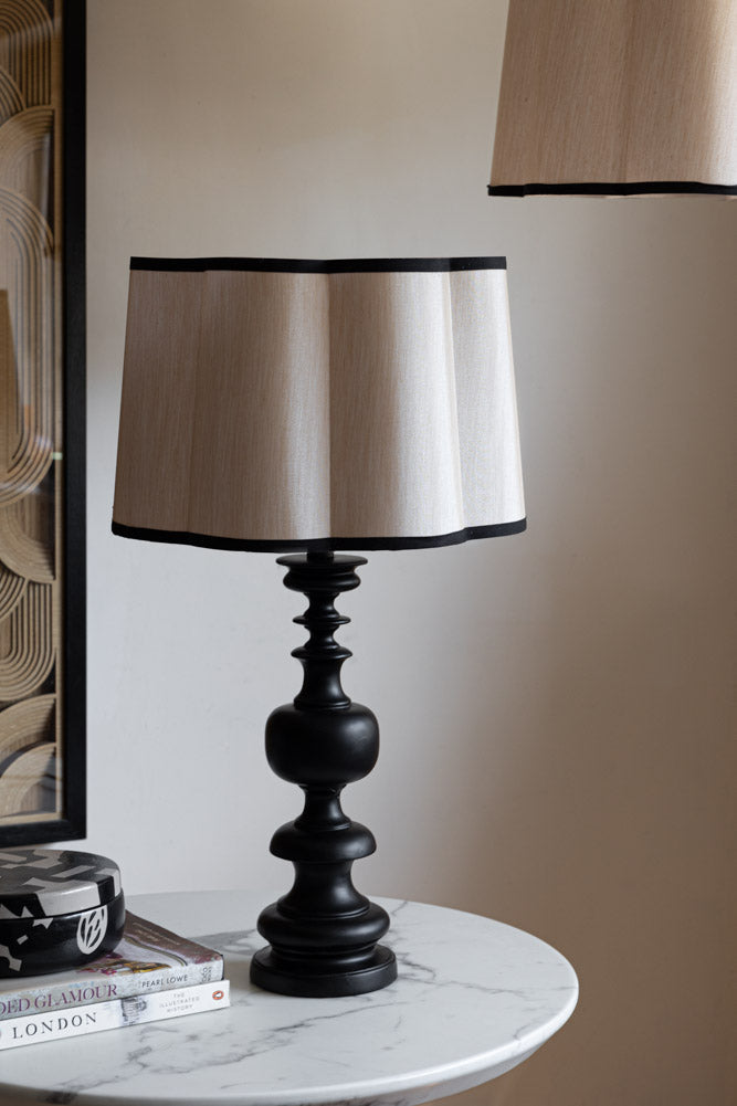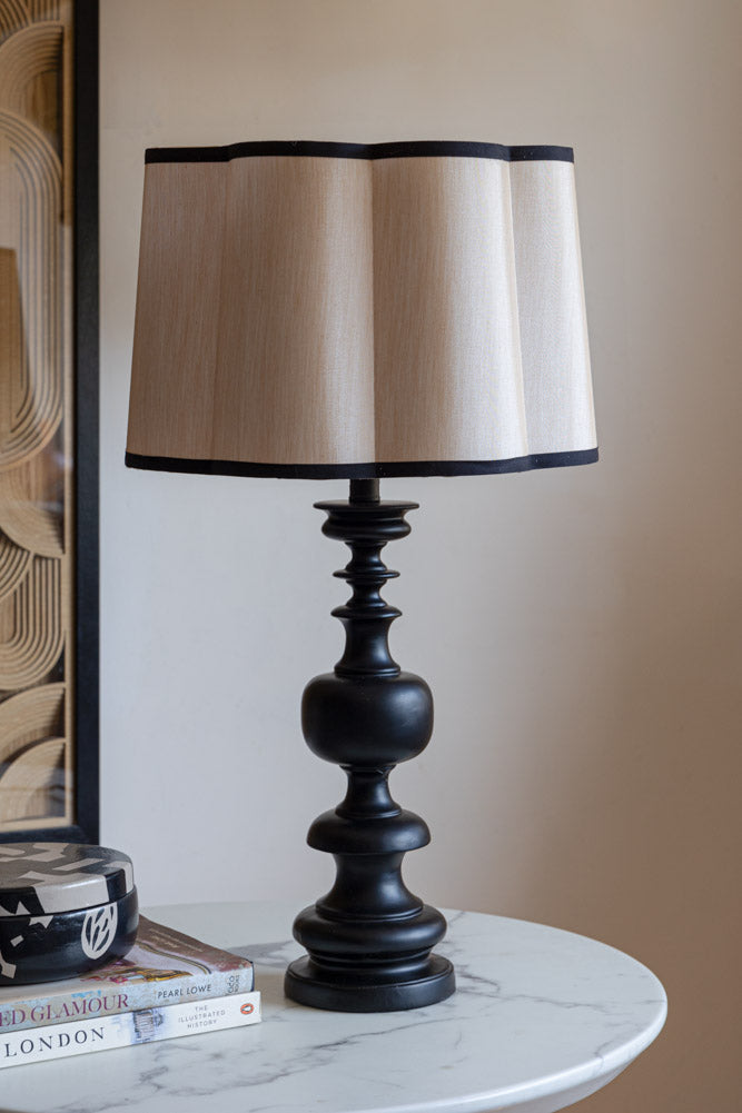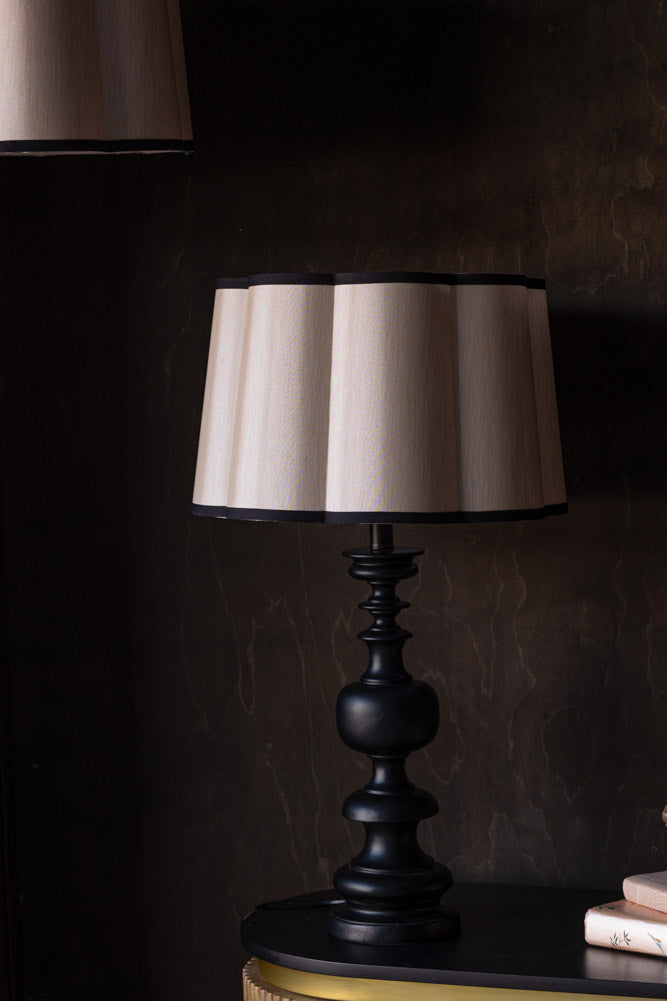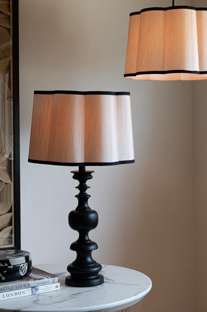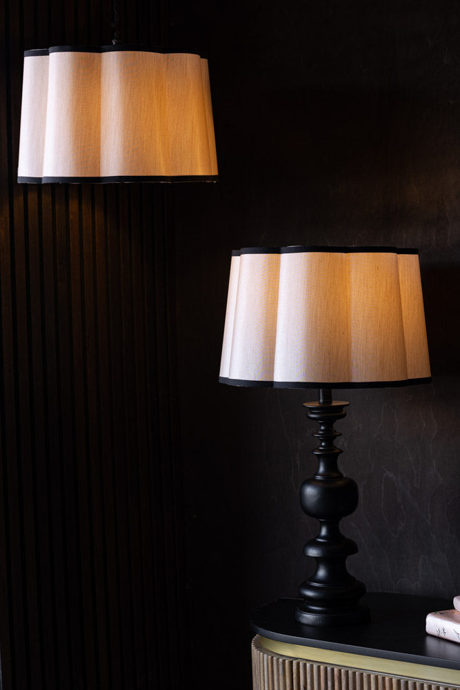 Add a soft, whimsical touch to your space with the Oyster Scalloped Easyfit Lampshade, in a delicate oyster tone with a subtle blush sheen. This lampshade brings a light-hearted elegance to any room, featuring scalloped edges and a sleek black tr...