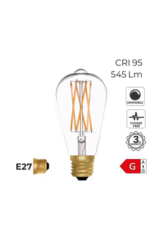 Transform your home with the ambient light of the Squirrel Cage E27 6W Clear LED Light Bulb. A top tip from our Founders for making your home feel cosy and inviting is to use warm white light bulbs. Taking inspiration from the sun and natural candlelight, warm light in your interior aids relaxation and helps create a feeling of cocooning calm. Inspired by traditional Edison bulbs, the filament of this LED bulb is exposed and complimented by a creative spherical shape that exudes old-school glamour. Perfect for dining spaces or the bedroom, this fabulous filament bulb works particularly well with any light fitting that celebrates an exposed bulb. And last but not least, it is fully dimmable to help set the scene for your every mood.