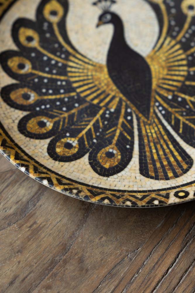 A little bit dramatic… in the best possible way. This small serving dish is here to steal the show. Set on a soft off-white base, it features the most stunning peacock design in rich black and deep golden tones, wings fully outstretched and ready ...