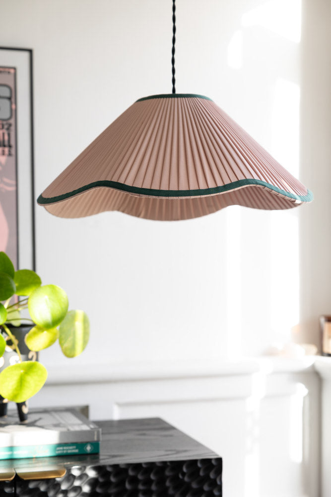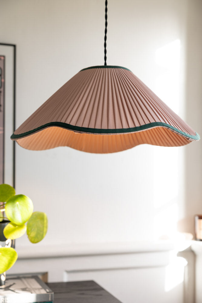 Say hello to soft colour done properly. The Scalloped Pleated Easyfit Ceiling Light Shade in Pink & Green takes everything lovely about a pleated lampshade and gives it a gentler, prettier twist. The dusty pink pleats feel warm and calming, while the soft green wavy edge adds just enough contrast to make it interesting without stealing the show. Once it’s on, the light filters through the pleats into a really flattering glow – cosy in the evening, fresh in the daytime, and always easy on the eyes. It brings colour into a room in that relaxed kind of way rather than a big statement moment. And just when you thought it couldn’t get any better, it’s easy-fit, so you just pop it onto your existing pendant and you’ve got yourself a gorgeous pink lampshade! No tools, no faff, immediate upgrade. Perfect for bedrooms, reading corners, or anywhere that wants a bit of warmth and personality while still feeling calm and put together. Pretty, but grown-up about it.