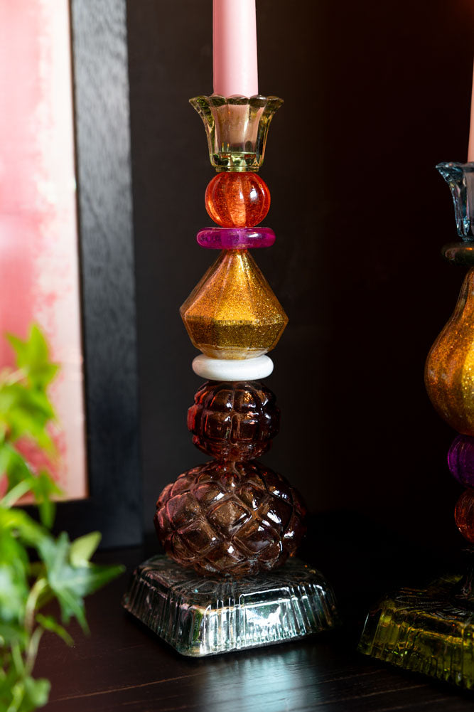 Say hello to your table’s new favourite show-offs. These quirky candlestick holders are basically little towers of joy – one tall, one shorter, both stacked up with a mix of playful shapes and dreamy colours that somehow work. Think: a perfectly m...