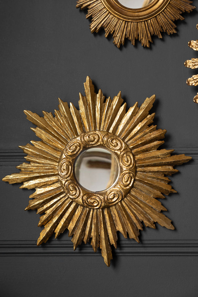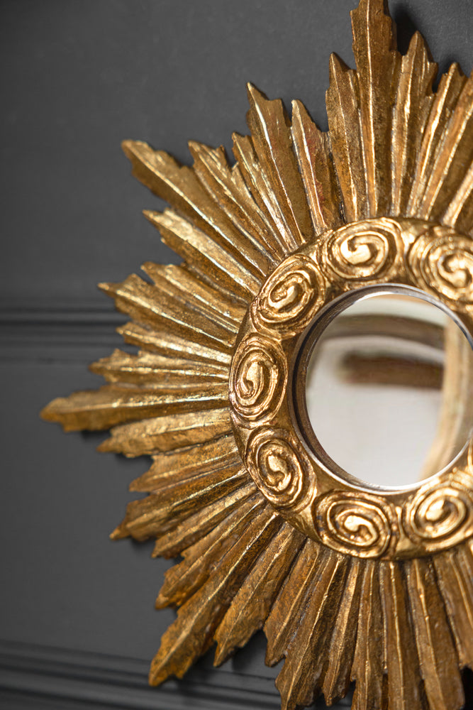 About The Antique Gold Small Star Convex MirrorThe Antique Gold Small Star Convex Mirror is a gorgeous piece that promises to add wonder to your walls. Designed with a unique frame that captures the look of a shooting star, the ornate detailed bor...