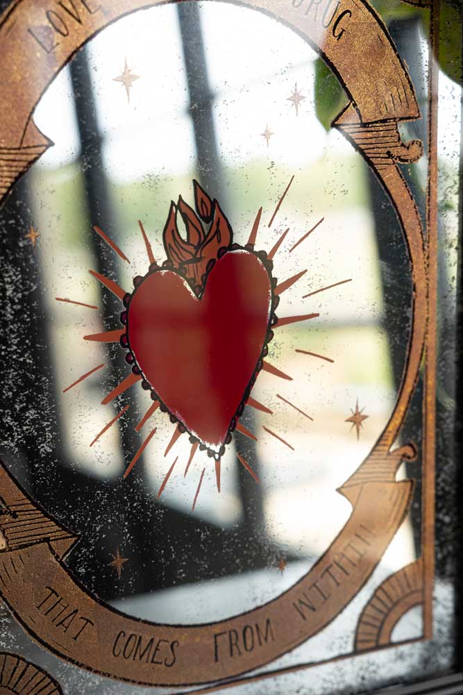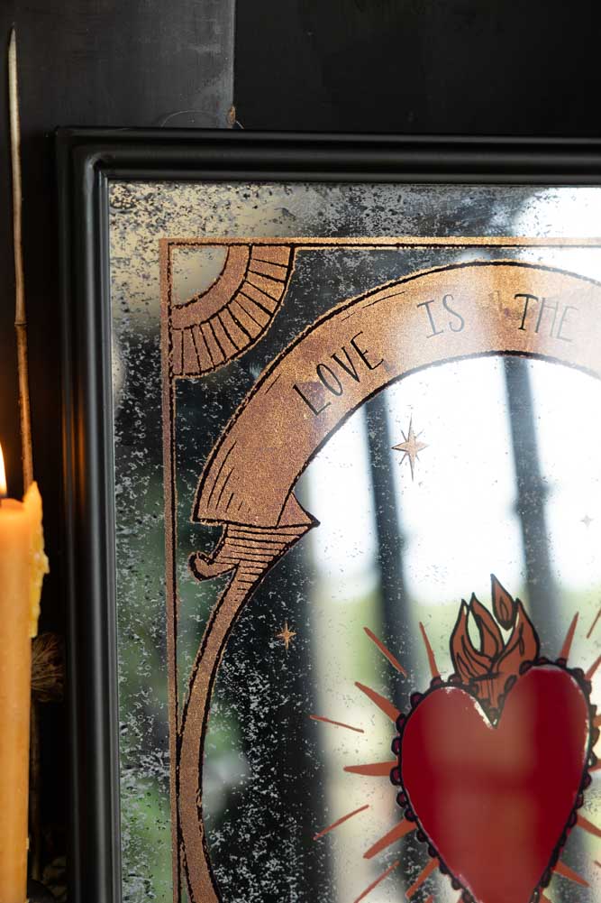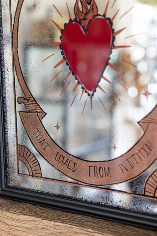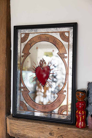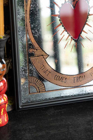 This thought-provoking piece is so much more than a mirror – it's a work of art. Featuring a beautiful red Milagro heart at its centre, which is a charm that symbolises love and protection, this chimes perfectly with the central message of this p...