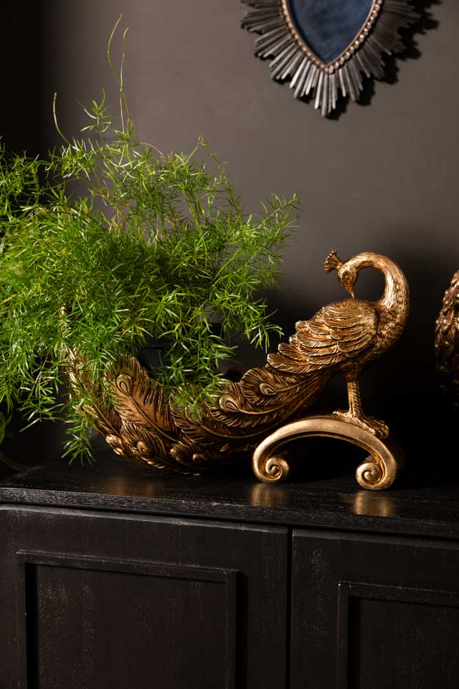 Prepare to fall completely in love with this decorative bowl – because subtle was never invited. This gloriously opulent piece is pure drama in the best possible way. Crafted in a rich antiqued-gold finish, the peacock’s sweeping feathers form a s...