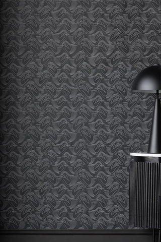 Dark and dramatic, the Rockett St George Deco Nymph Midnight Wallpaper creates a statement scene in your home. Designed as a small-scale pattern, the black background highlights the intrica...