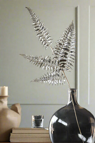 The Beautiful Swan Vase styled on a table with greenery inside.