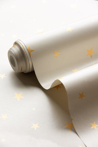 The Rockett St George Starry Skies Parchment Wallpaper celebrates the beauty of the night sky. Designed with an off-white parchment base colour, golden yellow stars of various sizes are scattered across the surface of this fabulous feature wallpaper. Designed in-house to celebrate Rockett St George's signature style, the star wallpaper measures L10m x W52cm, with a 52cm straight match pattern repeat.