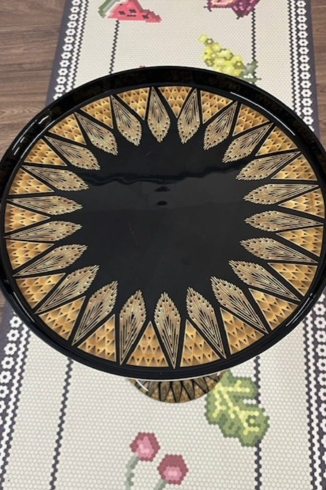 Serving up true Gatsby-era glamour, this Nearly Perfect black side table exudes pure Art Deco elegance. While it does have a minor scratch on the surface and base, its striking design more than makes up for it. The sleek, ribbed pedestal base is f...
