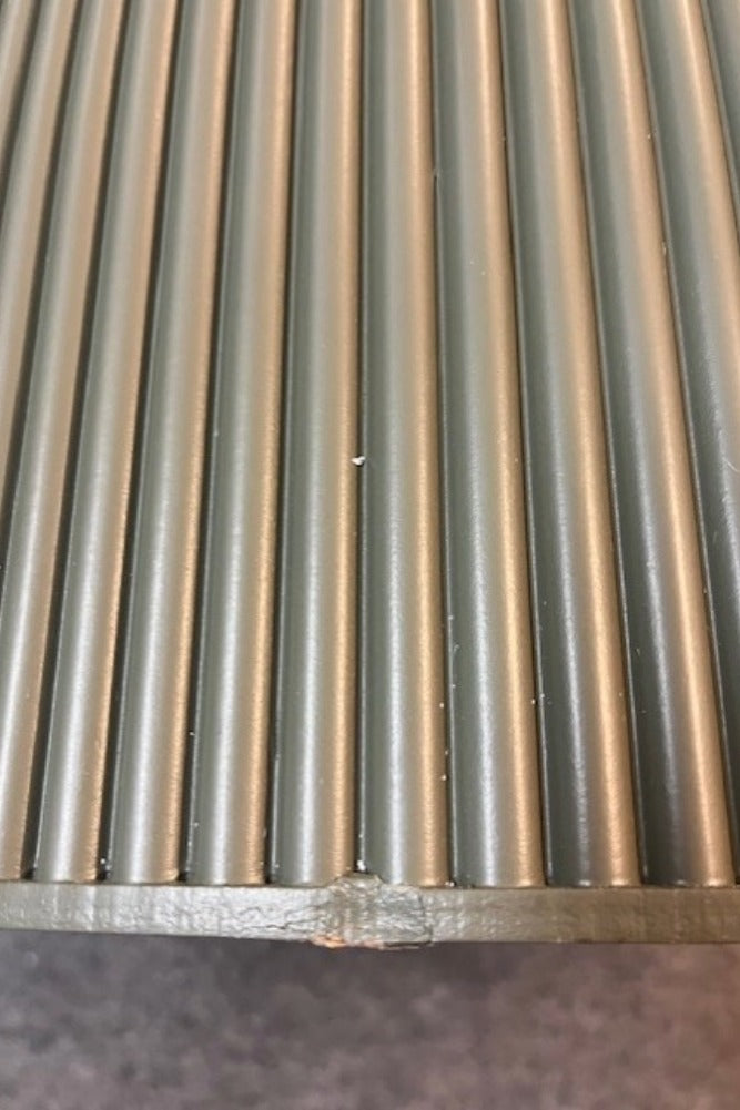 The Discontinued Olive Green Ribbed Side Table introduces something a little different to your living space. A Slightly Imperfect product with a couple of minor scratches on the bottom of the table. A large chic side table revealing a simple desig...