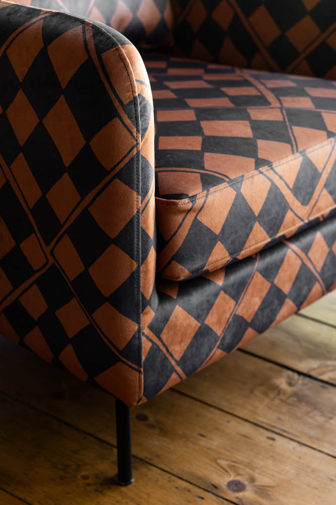 Say hello to The Edie Caramel Checkerboard Armchair – proof that velvet can be both rustic and modern. Wrapped in rich caramel and black checkerboard print, this accent chair has a perfectly imperfect vibe that feels a little artsy, a little retro...