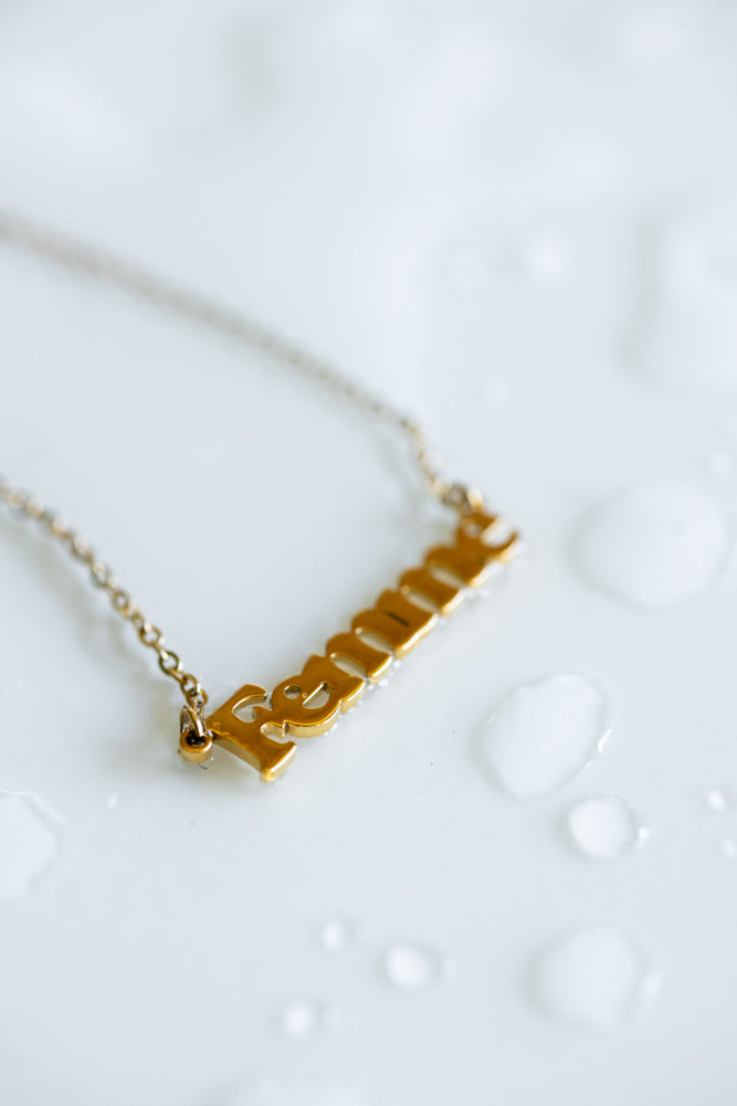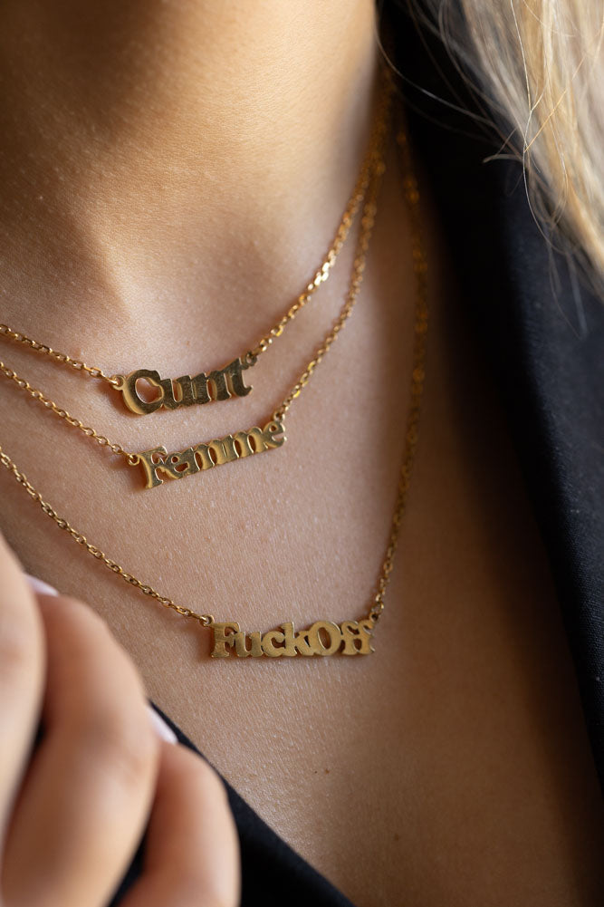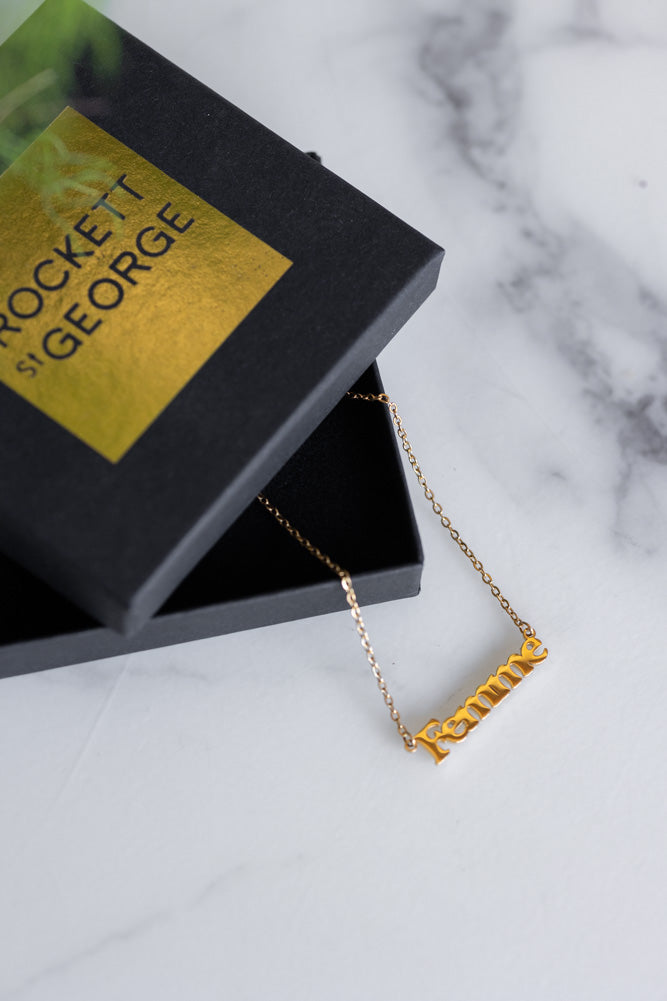 We are head over heels for this dainty necklace. Featuring the word ‘Femme’, which is as beautifully designed as the pendant, this comes on a delicate gold chain and is the perfect accessory for anyone who loves to embrace their feminine side, no...
