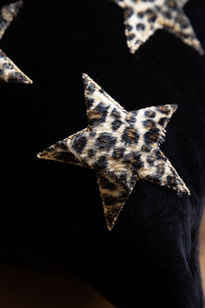 A luxe dog bed that we wish was created for humans too, the Leopard Stars Dog Bed is the best dog bed ever! Made with fully removable and machine washable materials, the top of the bed features a black faux suede fabric with faux fur leopard stars, while the reverse is made from cosy black fleece. Designed exclusively for Rockett St George by Creature Clothes Ltd, this luxury dog bed embraces our obsession with all things leopard print. Take a look at our size guide below to find the perfect size for your pampered pooch.
