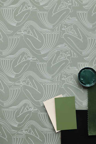 Designed with glamorous curves, the detailed graphic style introduces magical maximalism to any setting within your home. The fabulous Deco Nymph feature wallpaper is available in four colourways, with each introducing a different atmosphere and aesthetic. Celebrating green as the most versatile colour on the colour wheel, the faded olive hue looks great with everything, from warm brass lighting to natural wood textures, and provides the perfect base to showcase your style.