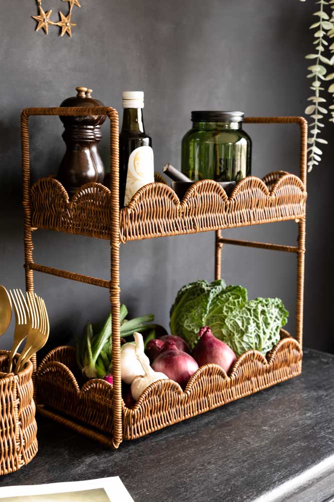 Say hello to your new favourite kitchen shelves – these rattan-style storage shelves are small enough to sit neatly on your countertop but big enough to keep all your daily essentials where you need them. With two roomy tiers and a gorgeous scallo...