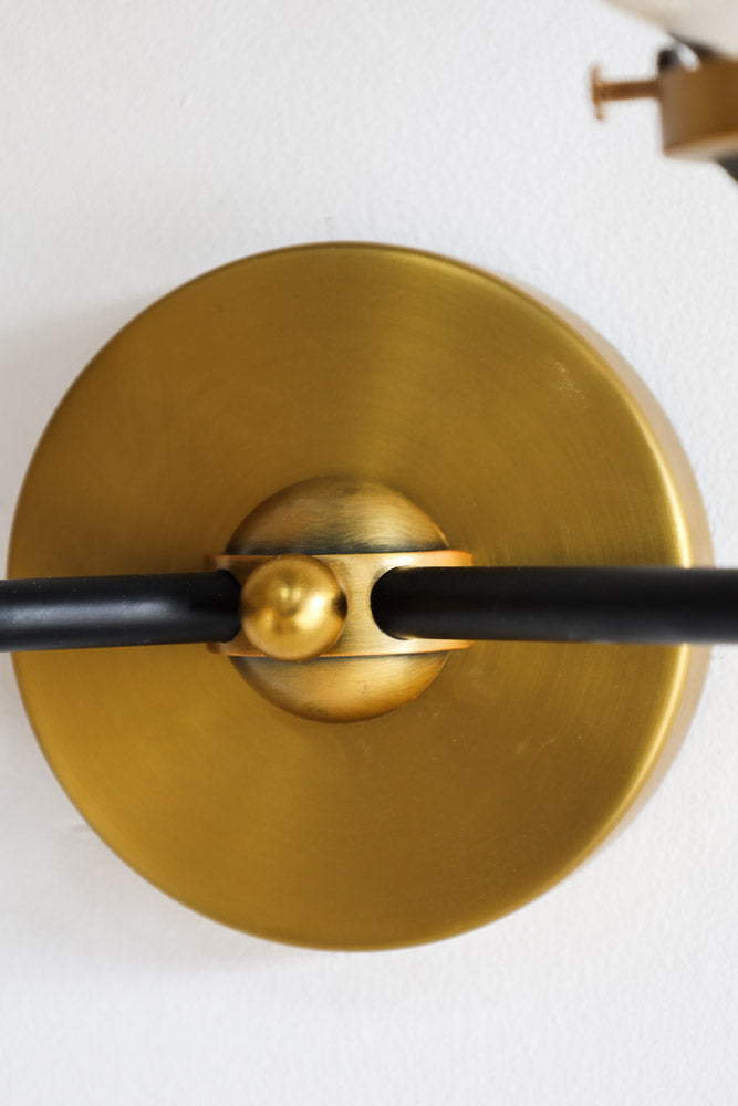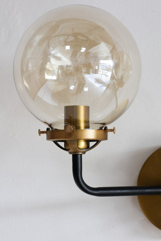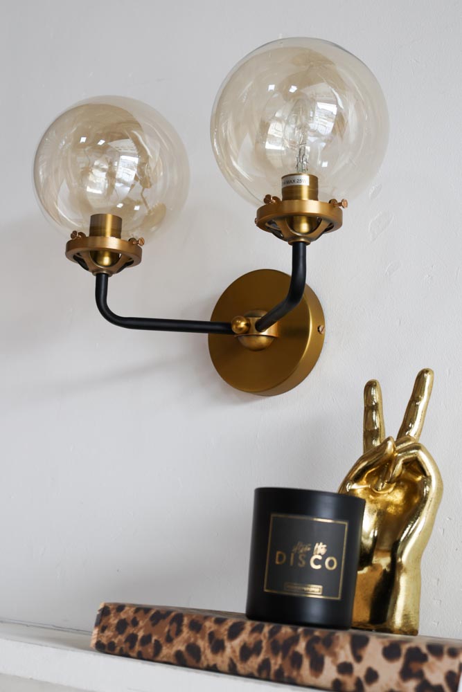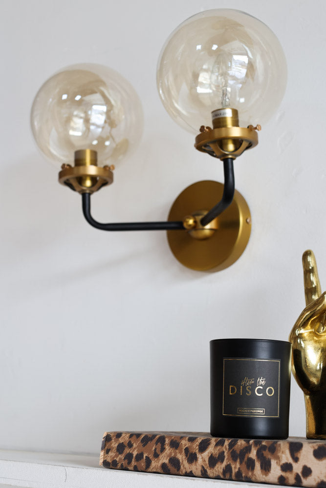 With a nod to the popular Parisian style, the Double Globe Smoked Glass Wall Light will create a delightfully alluring atmosphere in your interior scheme. This glamorous wall sconce showcases two glorious iridescent glass globes with black arms attached to a brass wall rose. This wall light takes two candle bulbs and can be easily fitted by unscrewing the fixture’s glass globes. What’s more, the dazzling iridescent glass takes the focus away from the bulbs so as to not compromise its spectacular design. Measuring 30cm in height, 35cm in width and 19cm in depth, this brass wall light would look utterly extraordinary styled three in a row.