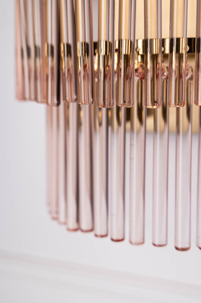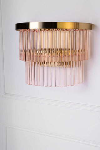 The Pink Tiered Glass Wall Light proves that chandeliers are not just for the ceiling. An iconic symbol of glamour, the signature tiered glass droplet look of a chandelier is created for the walls of your home with this gorgeous gold wall light. A...