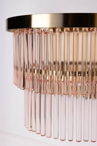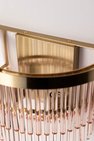 The Pink Tiered Glass Wall Light proves that chandeliers are not just for the ceiling. An iconic symbol of glamour, the signature tiered glass droplet look of a chandelier is created for the walls of your home with this gorgeous gold wall light. A masterpiece in modern glamour but at an affordable price tag, the chandelier shade of the wall light features pink glass droplets in a Provence rosé hue that releases a golden, peachy glow when switched on. The perfect lighting feature for a bedroom or living space, the art deco style influence of this wall light introduces an extra layer of luxury to your room, especially when styled as a set of two. A fabulous, rose-tinted solution to the rule of never using the overhead light, this wall light creates a warm and inviting atmosphere in your home and celebrates the cosy joy of staying in.