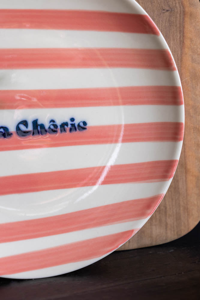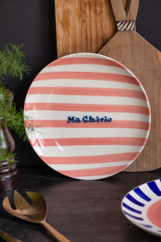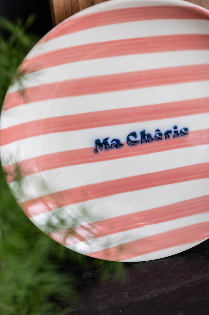 Say bonjour to the Pale Pink Ma Chérie Ceramic Serving Plate – the sweetest serving dish to serve up snacks, cakes and compliments. With soft white and rustic coral-pink stripes lined in perfect harmony, this round cutie gives off the vibes of a F...