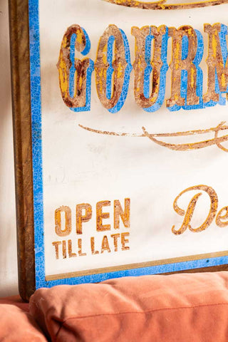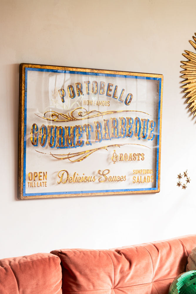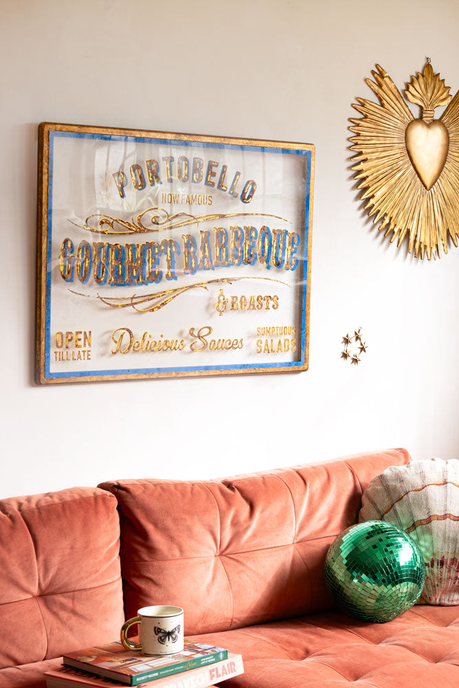 The Fanfuckintastic Sign displayed on a wall above a sideboard, styled with a leopard print candle in a candle holder and a photo frame on top of some books.