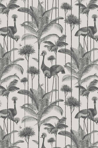 Celebrating your wild side, the Divine Savages Crane Fonda Charcoal Wallpaper introduces maximalist pattern to the walls of your home. Reimagined with a modern update to one of Divine Savages’ bestselling designs, Crane Fonda features a large-scale print of Grey Crowned Crane amongst lush palm leaves. Made in England using a traditional flexo print method, each roll of this botanical wallpaper measures W68.5cm x H10m, with a W68.5cm x H70cm pattern repeat.