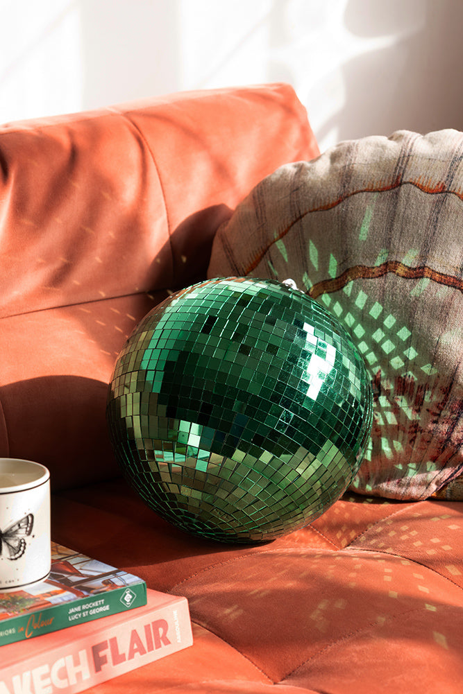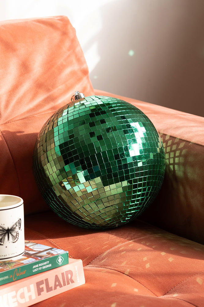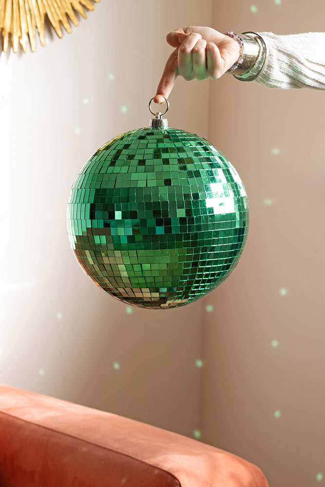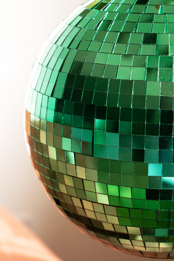 Say hello to the Green Disco Ball! This bold, fresh and vibrant twist on a party classic is here to shake things up. With dazzling green mirror tiles, this mirror ball casts an uplifting, energetic glow that takes your space from ordinary to elec...