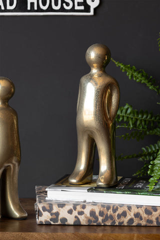 The Quirky Pigeon Ornament styled on some books next to a plant and candlestick holder.
