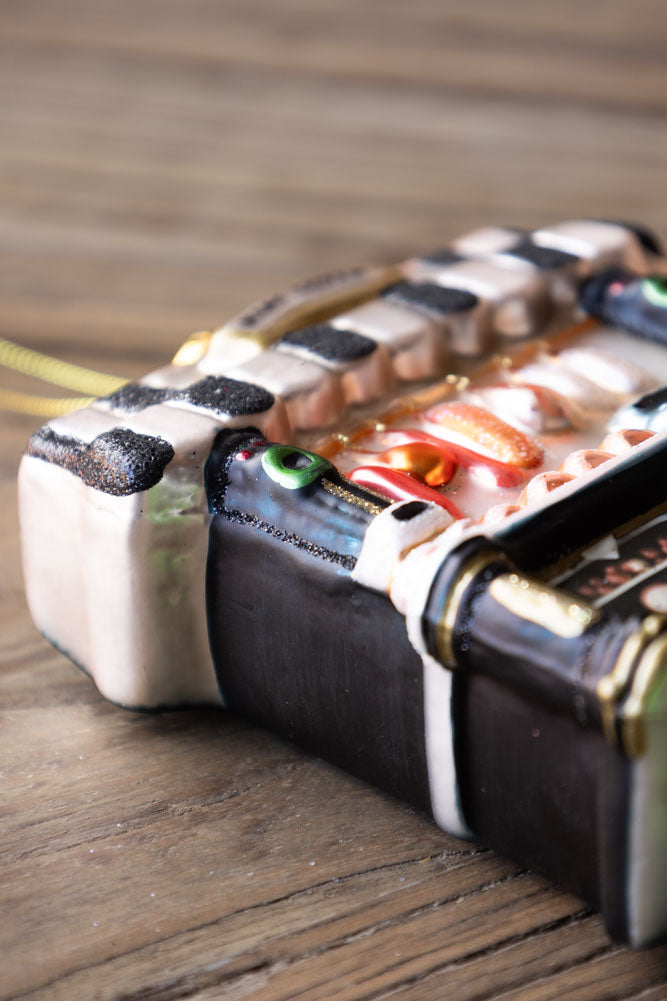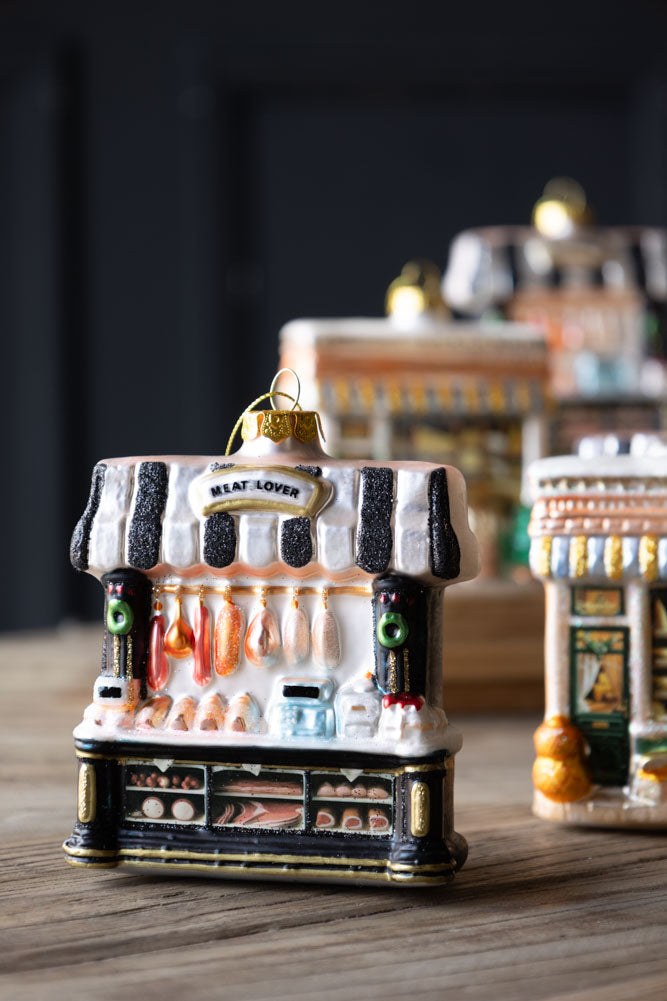 Feast your eyes on the Meat Trader Glass Christmas Tree Decoration – the cosiest little market stall you’ll ever use as Christmas home décor. Complete with hanging sausages, glistening cuts and a striped awning that screams old-school festive mark...