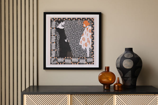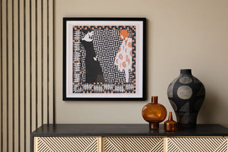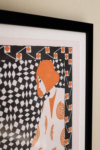 As a fine art print of a work by a renowned Austrian graphic artist who rose to fame in the twentieth century, the Monochrome Beauties Art Print has a truly timeless feel and is as captivating and contemporary now as when it was first created. Featuring two gorgeous female figures against an asymmetric chequerboard background with unique geometric detailing, this stunning wall art design adds a sense of wonder to your walls and is a favourite of RSG Co-founder Jane Rockett! Embracing a monochrome colour palette with a pop of bright orange, this is the perfect piece of affordable art to transform your home with the magic of monochrome.
