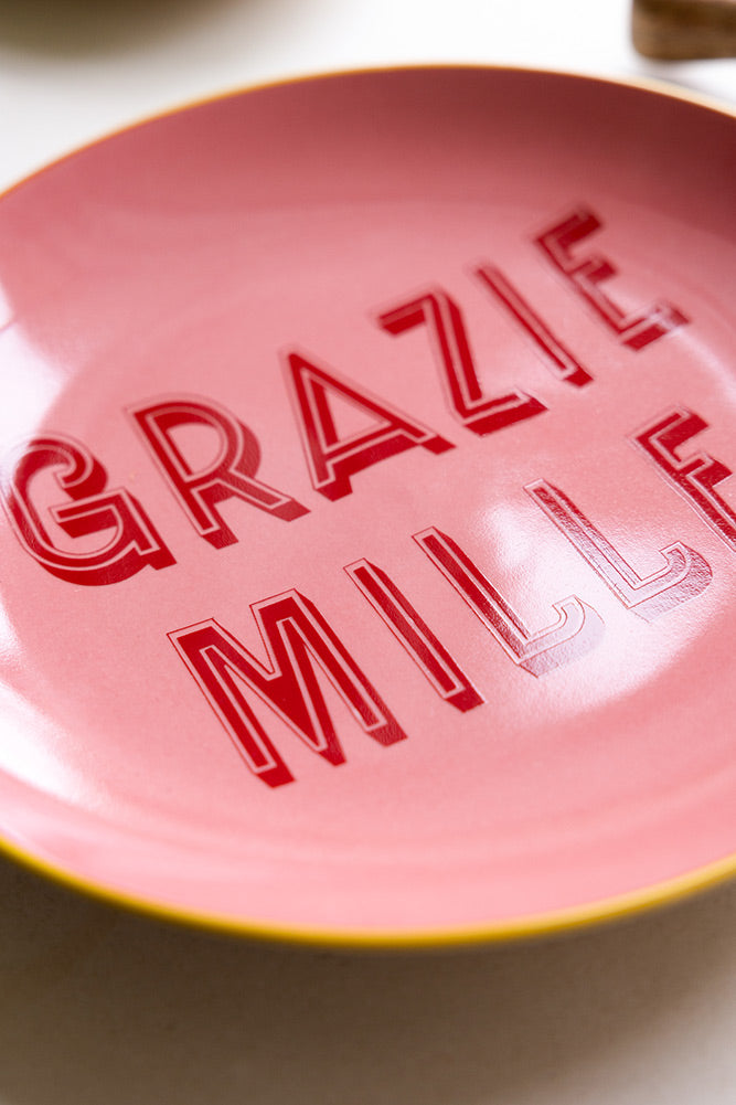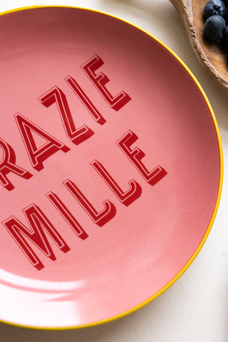 This hot pink ceramic plate is a gloriously cheery addition to every mealtime, especially as the more you eat, the more of this super-sweet message (‘grazie mille’, or ‘thank you very much’) is on show for your host, letting them know just how mu...
