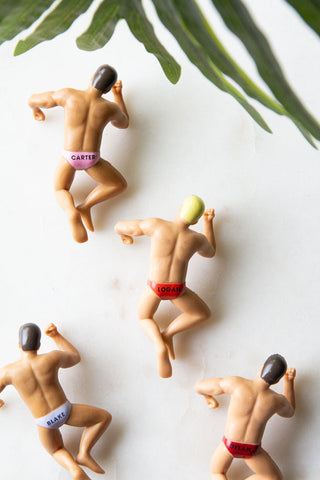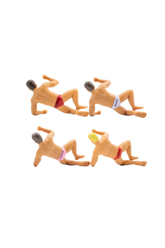 Add a touch of sass to your gatherings with our Set Of 4 Hunk Wine Glass Charms. These cheery drink accessories feature four fellas (who are very easy on the eye) in their Speedos, each with their names written on their bums for a bit more cheek! ...