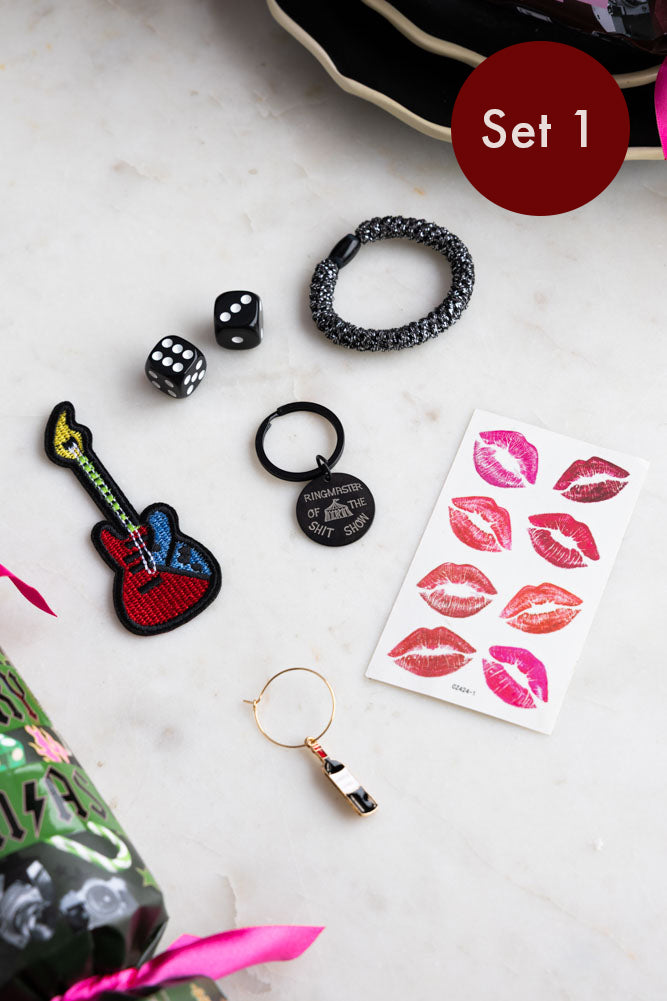 Each cracker is filled with a surprise stash of rock-star inspired treasures. You’ll receive one complete set at random from the three options below: