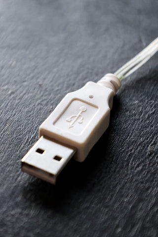 Battery-operated fairy lights with additional USB point (batteries not included)