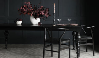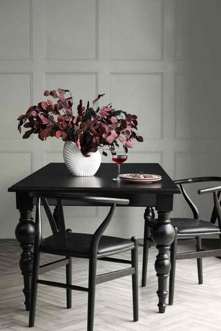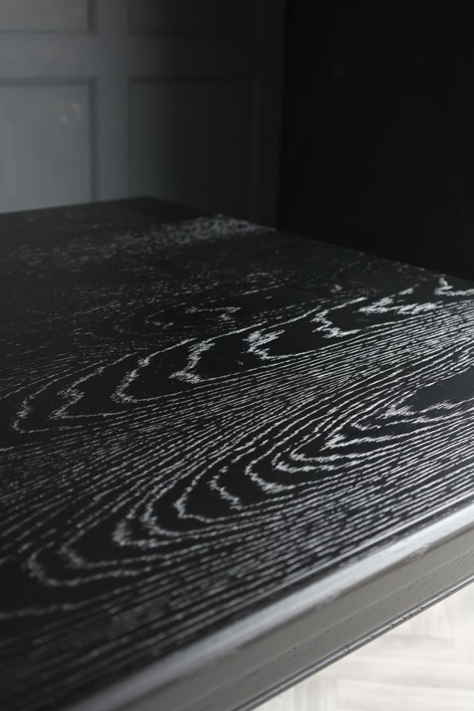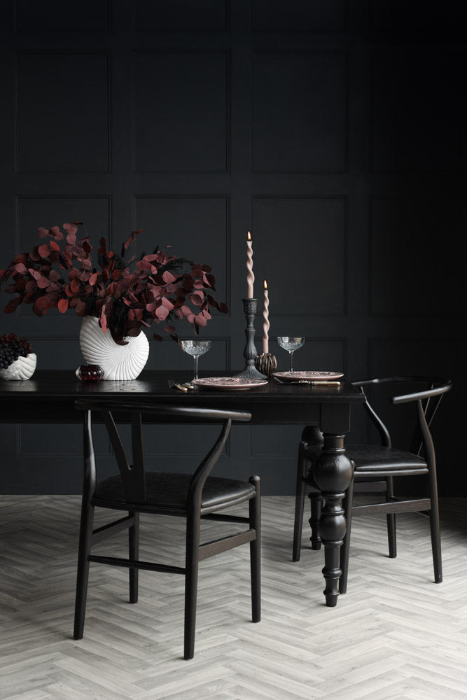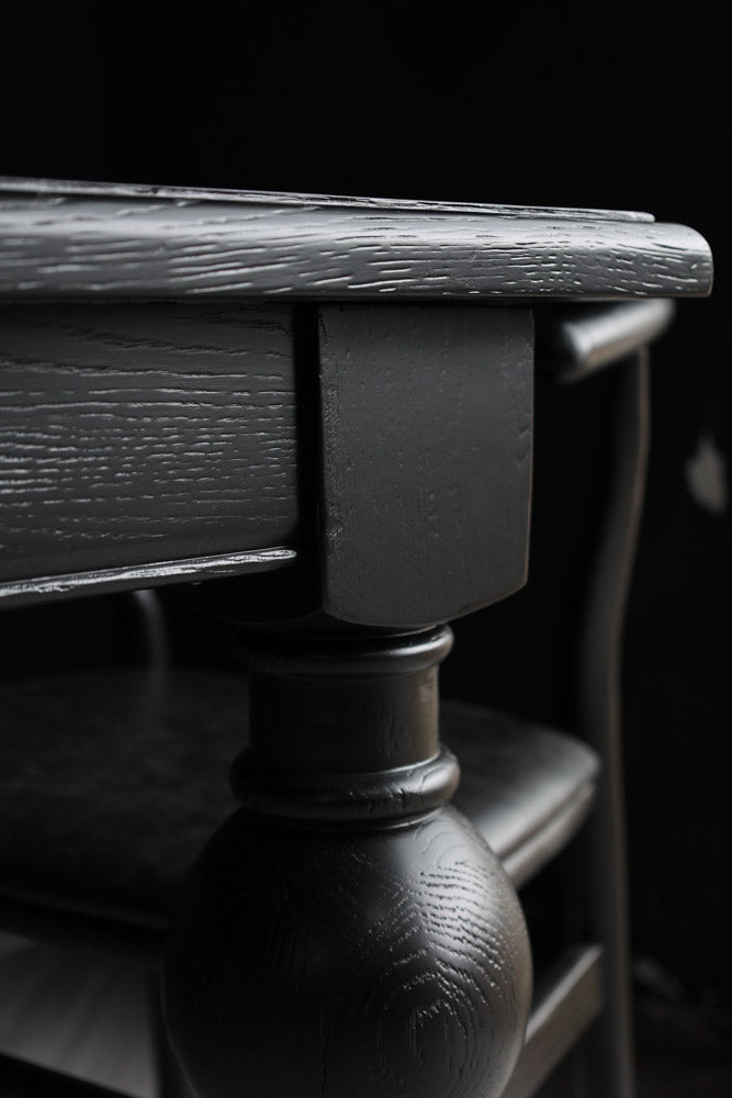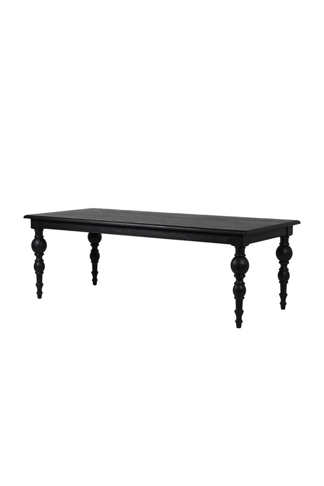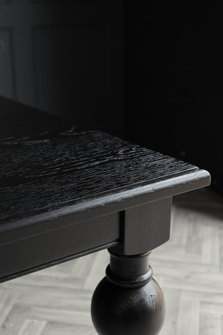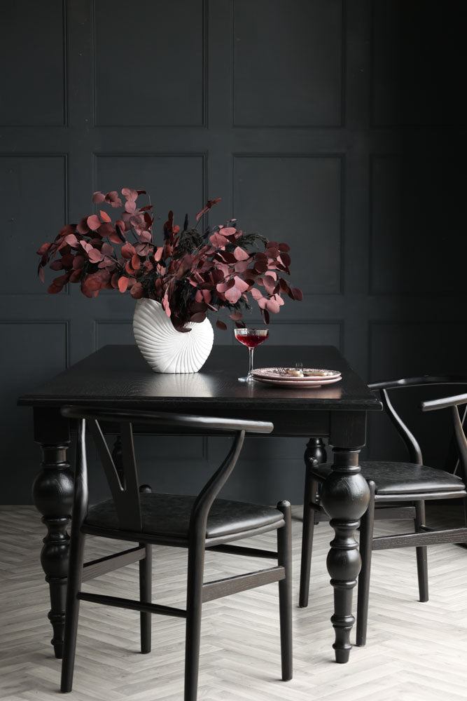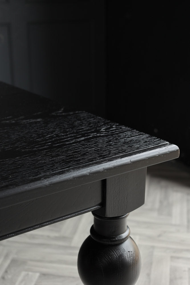 The Traditional Black Oak Dining Table is the perfect classic piece of dining furniture to seat the entire family whether big or small. Made from high-quality oak veneered wood, this oak dining table showcases a smooth finish with natural wood markings and beautiful turned wood legs that exude a textured finish. Fitting 6-8 people, this large dining table offers a solid black colourway making it ideal to suit a range of interior schemes, whether dark and daring, eclectic or classic. This black dining table measures 77cm in height, 100cm in width and 220cm in length.