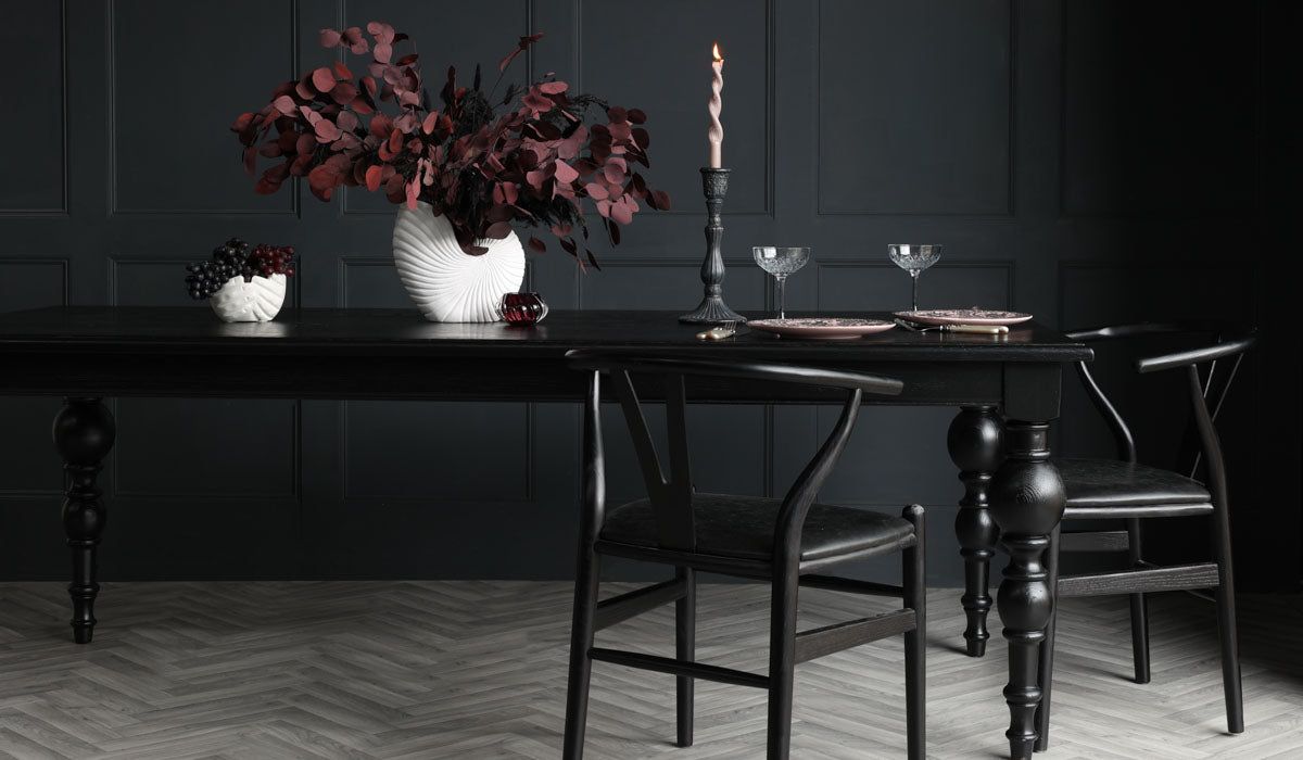 This traditional dining table will be the focal point of any dinner party so it’s essential that you style it in a way that creates instant wow factor to impress your guests. If you’re a fan of colour we’d suggest styling funky chairs around the table and accessorising with bright coloured dinnerware. It will also look spectacular with striking metal accents to contrast the natural finish of the wood, so consider styling dark metal chairs for an edgy look.